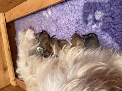 Tibet Terrier Decktag: 17.10.2025 Wurfdatum: 19.12.2025 Rüden (Gesamt): 2 Rüden (Verfügbar): 2 Hündinnen (Gesamt): 4 Hündinnen (Verfügbar): 4 Eltern: Zelandonis H-Karl-All-Fred Lamleh (Rüde) Treat me like a Queen Tibetan Goldies (Hündin) Kontakt: Ricarda Gimmer